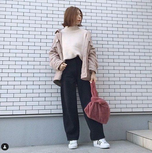 冬らしいベージュのニットを合わせたKaeee.yamさんのコーデ。流行のオーバーサイズアイテムを組み合わせても、脚長効果が抜群ですよね。合わせやすいシンプルなデザインもうれしいです。