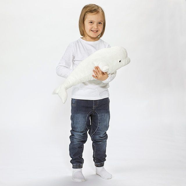 「おでこの丸みとつぶらな瞳が可愛い白クジラのソフトトイです」