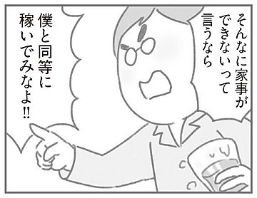 出産を機に専業主婦になり、いざ再就職しようとすると、就職口が見つからない。なんとか仕事を再開したものの、家事も仕事も中途半端に。夫に家事を手伝ってほしいと伝えると、「仕事は夫、家事は妻、育児は夫婦で」と明確な役割分担意識がある夫に、「僕と同等に稼いでみなよ!」と返され撃沈……。