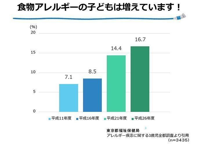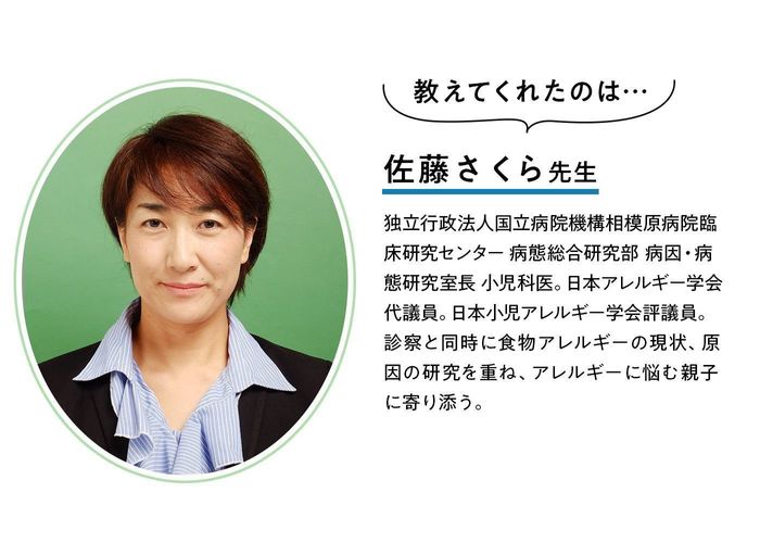 食物アレルギーは、ママ・パパからの心配の声が多いことの一つです。実際に食物アレルギーの子どもは増えていて、0~1才児の発症率も高いので、事前に正しい知識を持ち、備えておくことが大切です。ここでは、食物アレルギーの「きほんのき」を、アレルギー専門医の相模原病院 佐藤さくら先生に教えてもらいます。