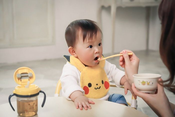 娘の首元にピカチュウがついていると、こんなにかわいいとは…! ストローマグや食器セットもパステル風のカラーデザインで食卓になじみ、使いやすいです。[永野友美さん&夢來(みらい)ちゃん(9カ月)]