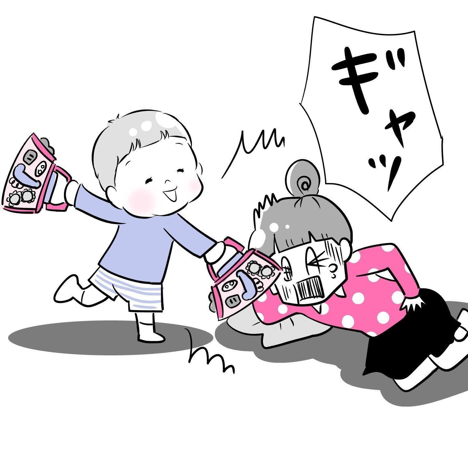 心配して駆け寄ってきてくれたのかなと思っていると、次の瞬間、息子の持っていたおもちゃが顔面を直撃。