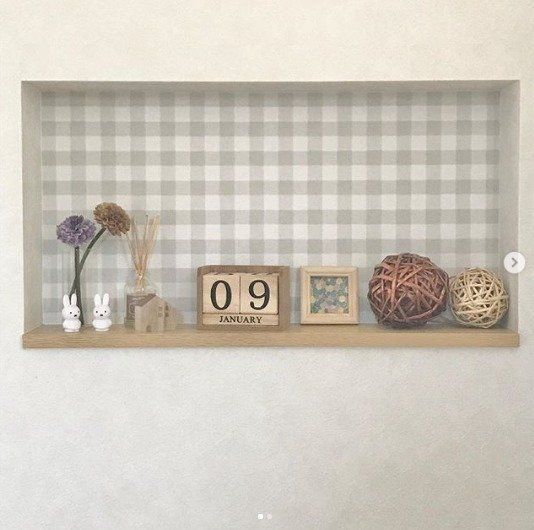 シンタさんは、造花で壁面をおしゃれにディスプレイ♪ ダイソーの造花も活用しているとのことですが、プチプラでできているとは思えないほどおしゃれに仕上がっていますよね。