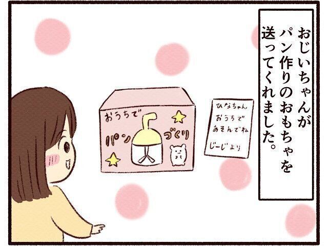 「ずっと家にいて退屈だろうから」と、パンを作れるおもちゃを送ってくれました。