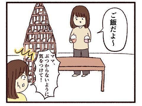 最近、夜中に勝手に崩れて「やっと解放された…!!」と思っていたのですが、翌日夫と娘がまた同じ場所に作っていました…