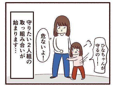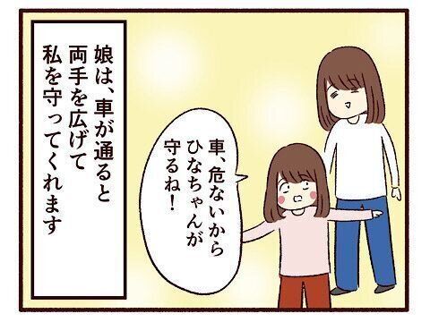 車が近くを通ると、両手を広げ全力で私を守ろうとしてくれる娘。