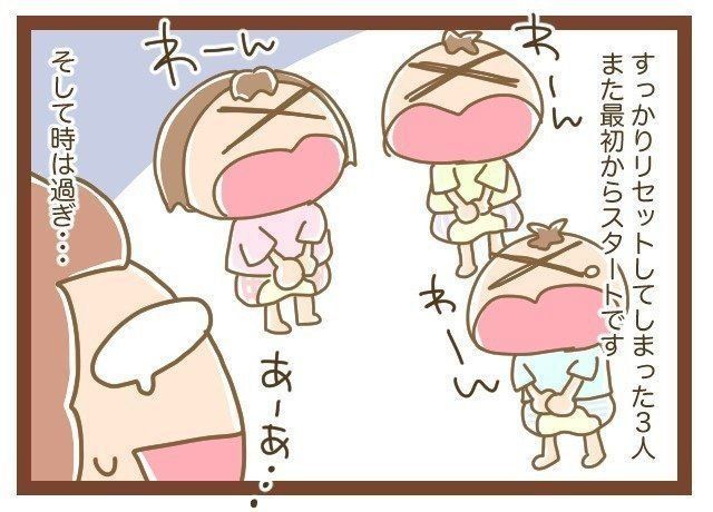 前回、高熱ですっかりリセットしてしまった3人。心が折れそうになりながら、2回目のトイレトレーニングをスタートしました。