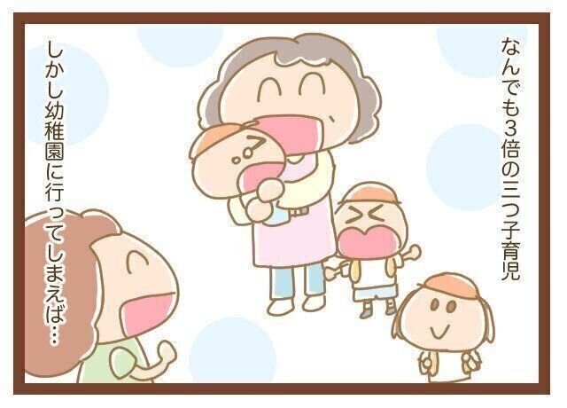 3歳で三つ子が幼稚園に入園し、本っっ当に楽になりました!!!この日を今か今かと待ちわびていたのです!