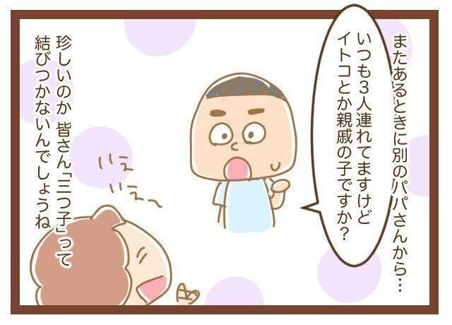 三つ子たちも、知らない先生に「三つ子ちゃんなんだね!」と声をかけられるそう。