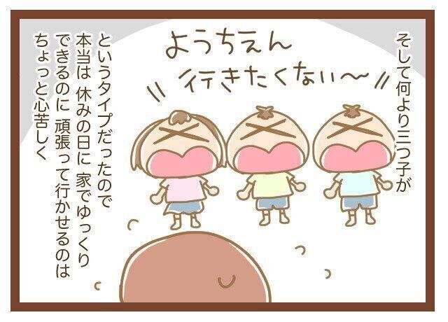 うちには園に持って行く用の子ども用のお布団もなかったですし、園で寝たことのない三つ子にもお昼寝がとてもハードルが高く。