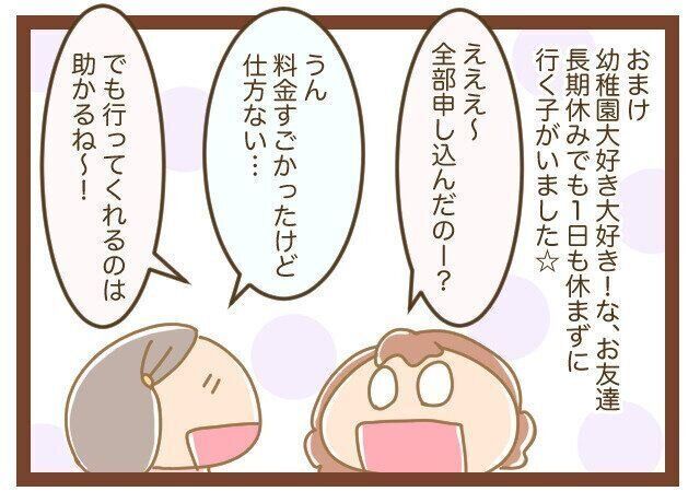 こども園の長期休みの間の「お預かり保育」のシステムにとても助けられました☆
