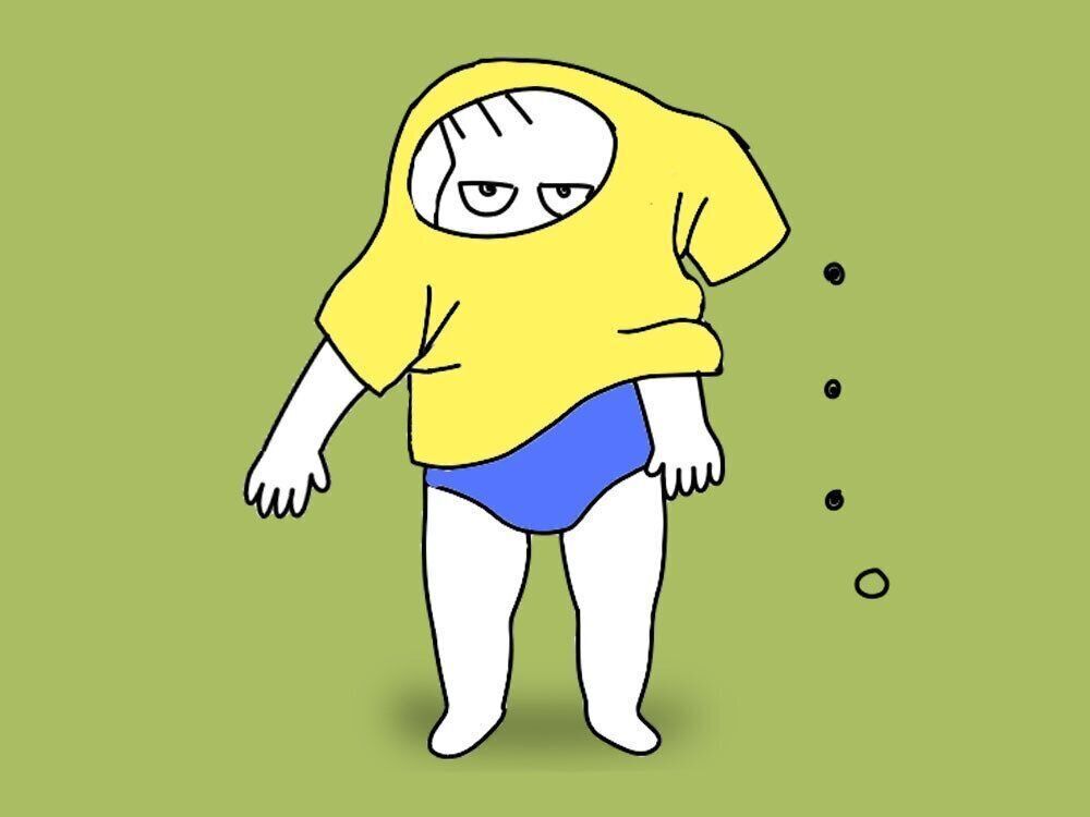 この前は長ズボンの上に半ズボンを履こうとしていました。