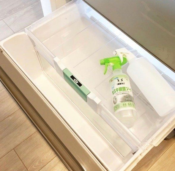 amiさんは、野菜室のこそうじ(小掃除)にセスキ炭酸ソーダを活用しています。ベタついた汚れをセスキ水で落とした後、アルコールで仕上げ拭きしているそう♪ ナチュラルクリーニングは冷蔵庫などの洗剤を使いたくないところでも気兼ねなく使えるところがいいですよね。