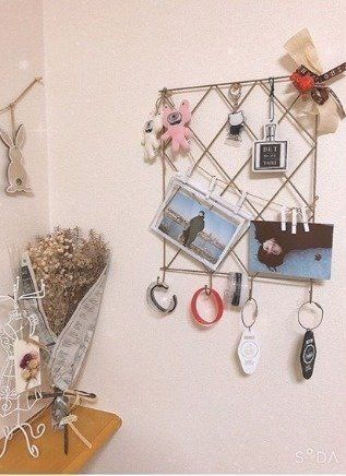namichanさんは壁掛けできるワイヤーネットをインテリアに活用しています。お気に入りのものや写真を飾って楽しめるのがいいですよね。100均のワイヤーネットは収納やインテリアに使いやすいとインスタでも人気の高いアイテムでした(^^)