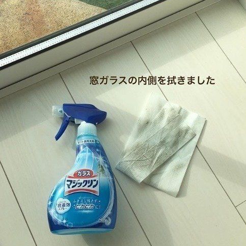 ShuriSakamotoさんは窓ガラスの内側をこそうじ(小掃除)。ガラスマジックリンと、クイックルワイパーのドライシートを使って行ったとのこと。「こんなに汚れていたのか…」と驚くほど汚れがとれたそうですよ。