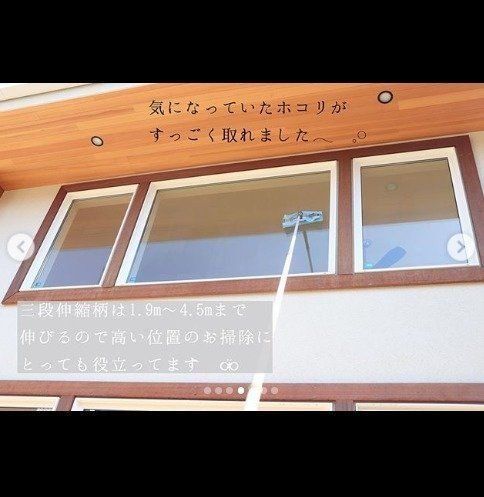 aki マイホームきろくさんは、高所ワイパーなどを使って手の届かない高い位置にある窓をこそうじ(小掃除)。吹き抜けのあるお家にもおすすめだそうですよ♪