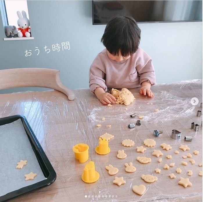 子どもの年齢が小さいうちはクッキーづくりがおすすめ!mochinosuさんも子どもと一緒に型抜きクッキーを楽しみました。材料を混ぜる、生地をこねる、型抜きをする、どれも子どもが大好きな動作なので、クッキーづくりは夢中になってくれますよ。変わった形になっても楽しい♪焼き上がれば美味しいおやつができあがりです◎