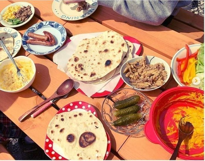 mayukoさんは気分を変えてお庭で外ランチ!手作りチャパティのミニパーティーは、とっても楽しくて美味しそう。チャパティは強力粉に塩・油・水を混ぜたら焼くだけなので、子どもと一緒に作って食べられます。チャパティにはさむ具材も、家にあるもので十分!お庭やベランダに持ち出すだけで、ピクニック気分が味わえますよね♪