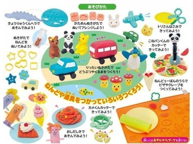 ねんど遊びは色彩感覚、コミュニケーション能力、段取りを考える力、集中力、手先の器用さ、自由な発想を育みます。何を作ったら良いかわからない場合も、遊び方ブックが付いているので親子で幅広いねんど遊びにチャレンジできます。