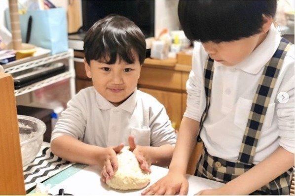 Ayaさんも子どもたちと初めてのパン作りに挑戦!パン屋さんの絵本を読んだばかりだったという子どもたちはノリノリで生地をこねていたそうです