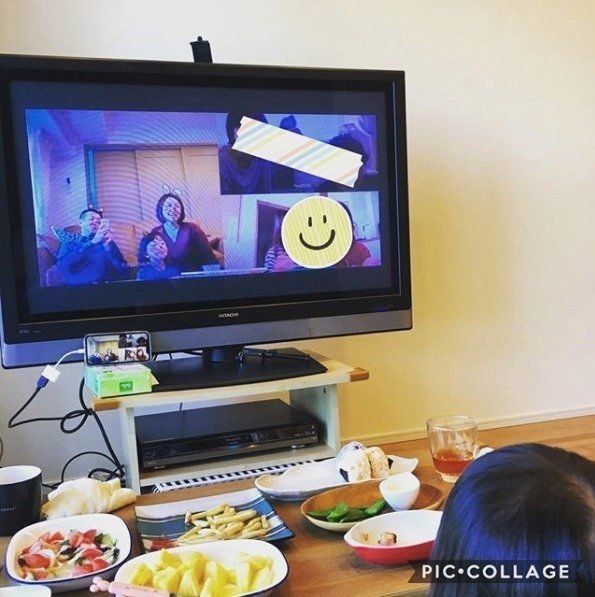 稔さんのおうちでは、お友達家族とオンラインランチを開催したそうです。携帯をテレビに繋いで大画面にすれば、大人数でもお話しやすいですね。