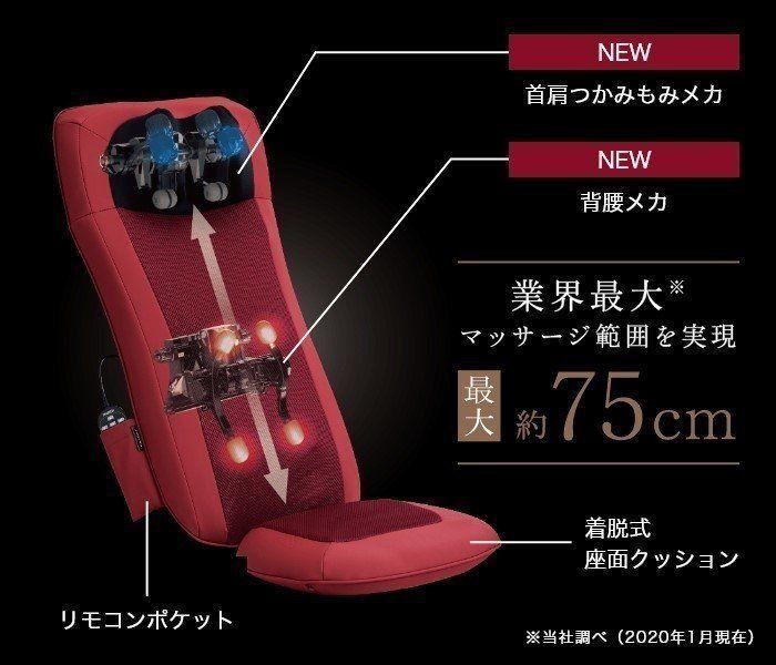 首・肩には計6つ、背・腰には計4つの「もみ玉」が搭載されていて、丹念にマッサージしてくれるので本当に極楽。このクオリティはセルフマッサージでは不可能なんですよね。落ち着いたデザインで主張しすぎないためインテリアにも合わせやすいのが嬉しい所です。