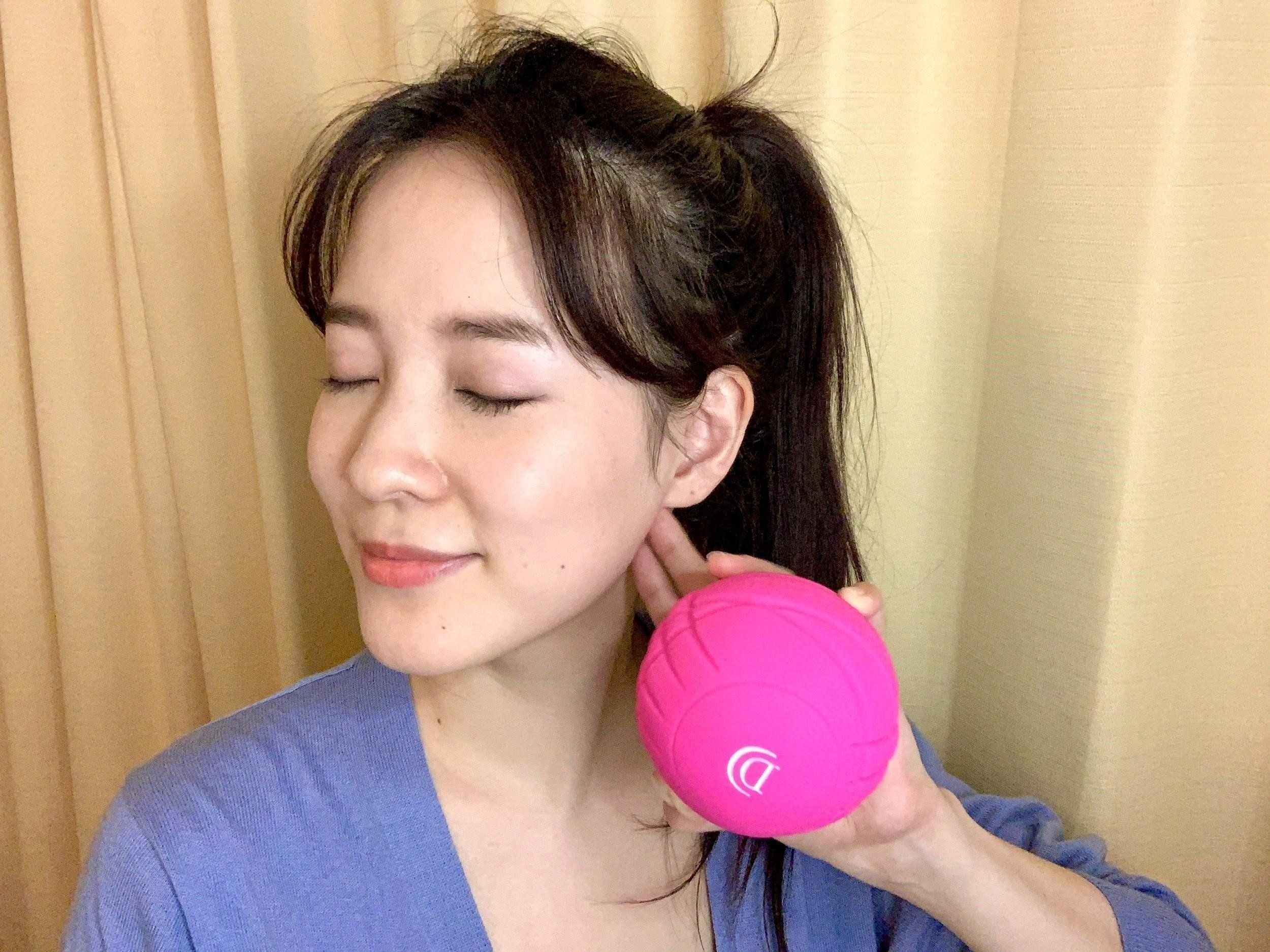 これ1台で首や肩・胸まわり・足腰・フェイスラインなど身体全身に使うことができ、自己流でのストレッチとは比べ物にならないほど筋肉の深層部まで振動がダイレクトに伝わってきます。コンパクトな球体だからこそ、自分にしか分からないような小さなツボにもジャストフィットするので「そう!そこ!」と思わず声がでてしまうんですよ。