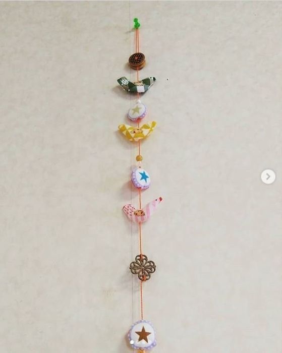 あかねさんは、小さな作品を繋げたオーナメントを手作り。布製のトイやレース編みの他にも、ボタンや編みグルミなど好きなものを組み合わせて色々な雰囲気のものを作ることができます。見慣れたお部屋の雰囲気も変えられて、いい気分転換になりそうですよね。