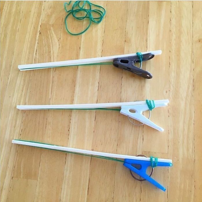 割りばしでっぽうは作るのが少々大変ですが、Masamiさんが作ったこちらのてっぽうは、割りばしに洗濯ばさみを一つ輪ゴムで留めただけのかんたん工作!使う時も、洗濯ばさみを少し握るだけなので小さい子でも遊べますよ。遊ぶ時は広めの場所に的を作り、人に当たらないよう必ず保護者が付いてあげてくださいね。