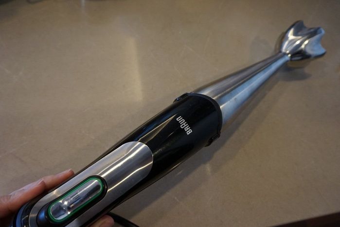 離乳食をこまかくすりつぶすのに、「ブラウン」のハンドブレンダーがあるとすごくラクですよ。なめらかなペースト状にできて、少量でも使えるので、離乳食作りには欠かせません。本当におすすめなので、友人への出産祝いに贈ることも多いです。