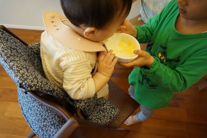 あと、上の子が「あげてみたい」とあげてくれることがあるんですが、そうすると、本当によく食べてくれるんです。離乳食は食べる量や栄養よりも、「食事って楽しい」ということを伝えられたらいいなぁと思っています。