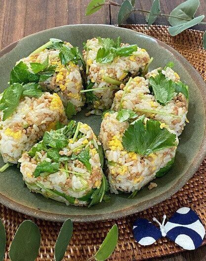 三つ葉でさっぱり!そぼろ三つ葉おにぎり