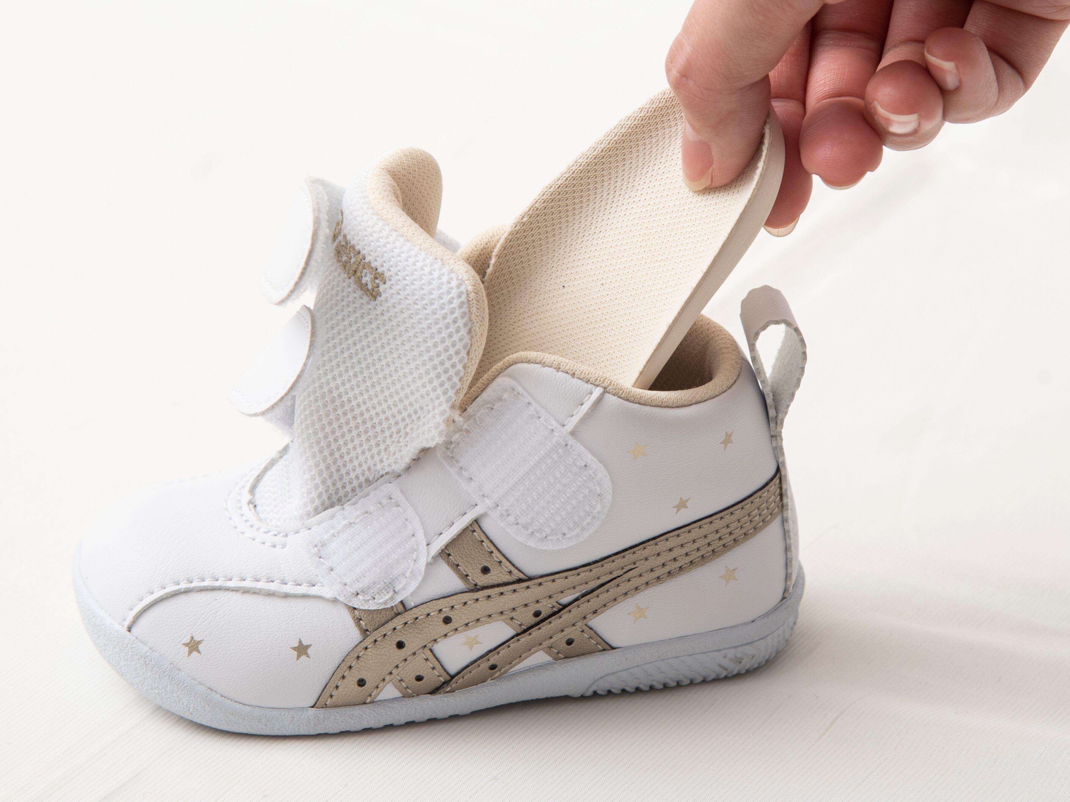 中敷きが取り外せると、足のサイズ確認がしやすくおすすめです。また、中敷きだけを洗うことができ、衛生的に使えます。履いていないときは中敷きを取り出し、中敷きのつま先を上にして立てて靴の中の換気や乾燥に心がけましょう。