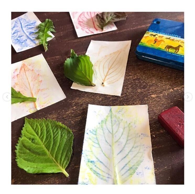 保育士のくるーんさんは、ご近所散歩で十分に楽しめるはっぱアートを紹介してくれています。子どもと一緒に少しお散歩を楽しんだら、道端などのはっぱを1枚持ち帰ります。家で色や形を観察したあとに、ブロッククレヨンでこすり出しをすると…とても素敵なアートに!思い思いの色でこすり出されるはっぱに、子どもたちも夢中になりそうですよね。