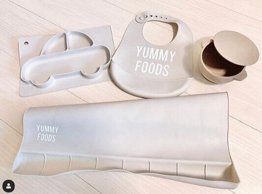 しまちゃんさんはこんなにたくさんのお食事グッズをGET!エプロン以外は500円商品だそうですが「これは500円でも買い!」とのことです♪