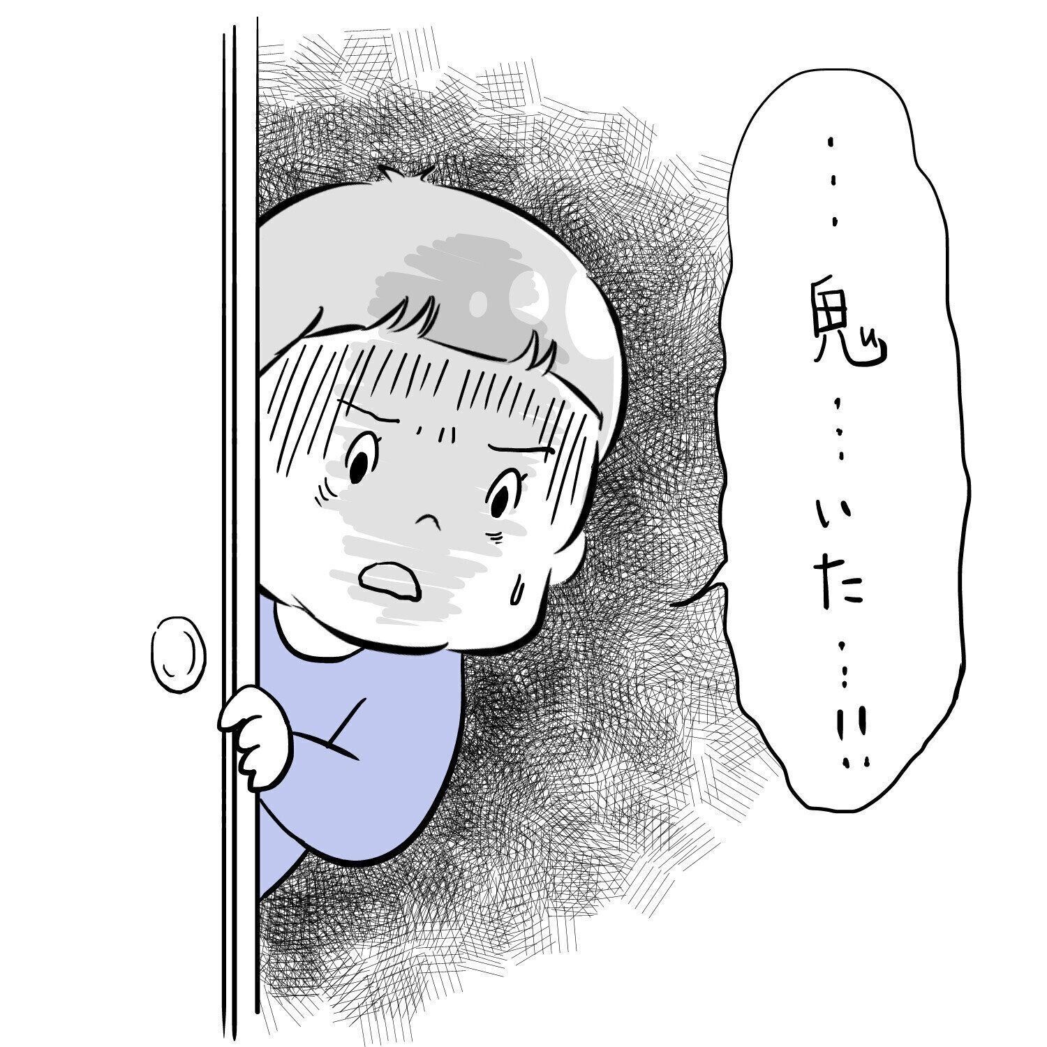 私が「え?鬼いたの?怖いね」と言うと、ササっと扉の奥へ隠れてしまった息子。