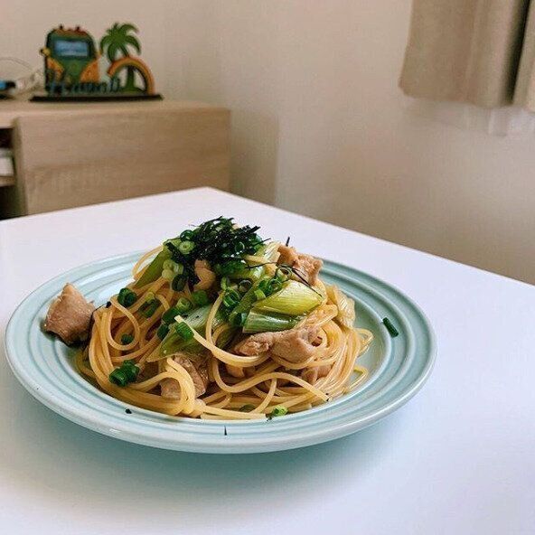 がおゆち(食欲)さんは鶏肉とネギの和風醤油パスタを作ったそう(^^) ボリューム感たっぷりで美味しそうです!