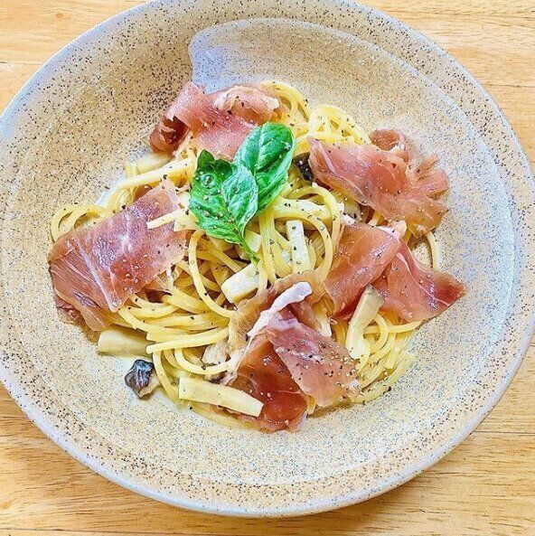 まいぴごはんさんは余っていた生ハムとエリンギを使ってクリームパスタにアレンジ(^^) カフェメニューのようなおしゃれなパスタに仕上がっていますよね♪