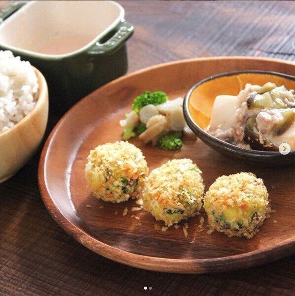 YANPIさんが作ったのは、さつま芋、にんじん、たまねぎ、小松菜などの野菜がたっぷり入った揚げないコロッケ。パン粉をまぶすだけでできるのでとても楽ちんなんだそう。