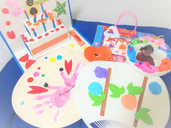 今回は平面工作を多く作りました。平面工作は、子どもの祖父母や曾祖母など、同居していない身内にも郵送しやすいのがメリット。