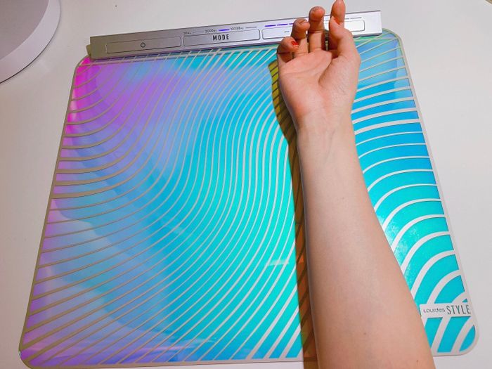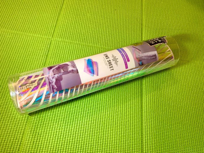 エクササイズバイクは気になるけど、さすがに小さな子供が居るから置けないかも…という方へおすすめのが「ルルドスタイル EMSシート AX-KXL5700」(実勢価格:5,000円)。オーロラ色に輝くこちらのシートは、なんと薄さわずか約1mmのEMSシートなんです。