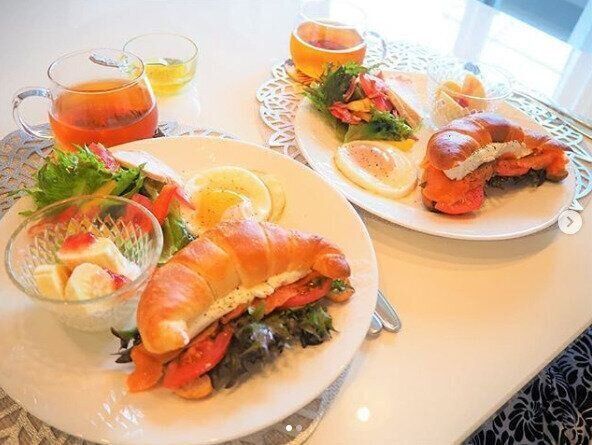 hidekoさんは在宅勤務の旦那さんとカフェ風ランチプレートを楽しんだそう。見た目がとっても華やかで、本当にカフェで食べているかのような気分になるクオリティですね!