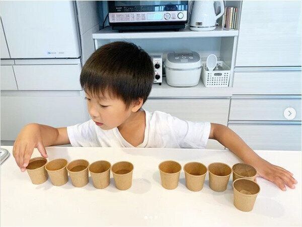 r.post.2020さんのおうちでは、水の量が多い順にコップを並べかえるというゲームや、水の表面張力の実験をしたそうです。水の入ったコップに紙でフタをして逆さまにしてみると、水がなぜかこぼれない!水の不思議な特徴を知ることができる面白い実験遊びですね。