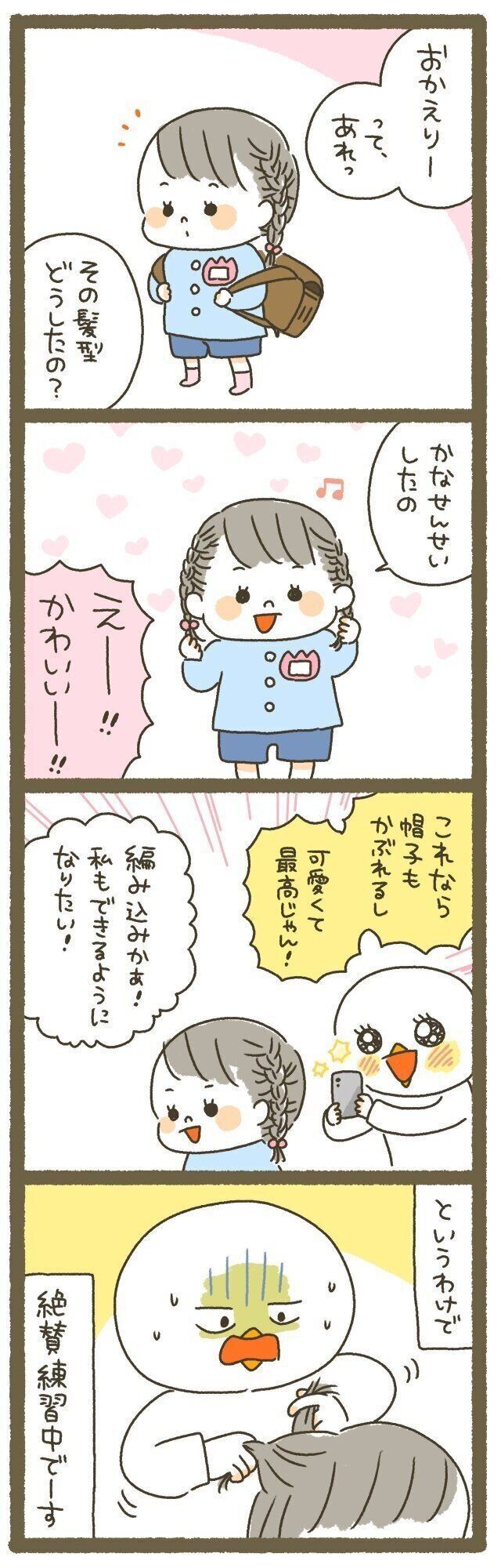 自分自身はずっとショートカットなのでしばることもなく、長女を育てたはずなのにヘアアレンジの腕は上達せず…。