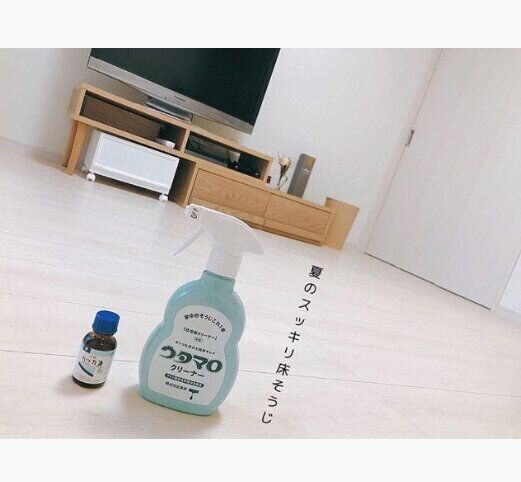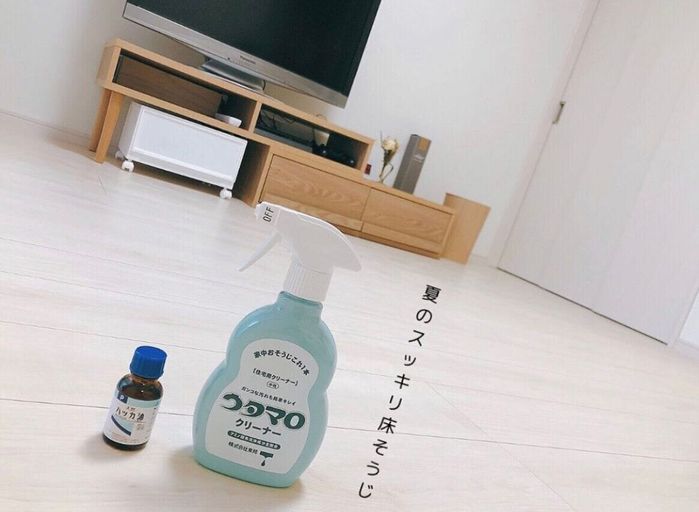 motoko_roomさんは、べたつく床をウタマロ×ハッカ油のコンビですっきり拭き掃除!ウタマロを水で薄めたいつものウタマロ水にハッカ油を数滴加えると、お掃除後のお部屋にさわやかな香りが漂っていいそうですよ(^^)