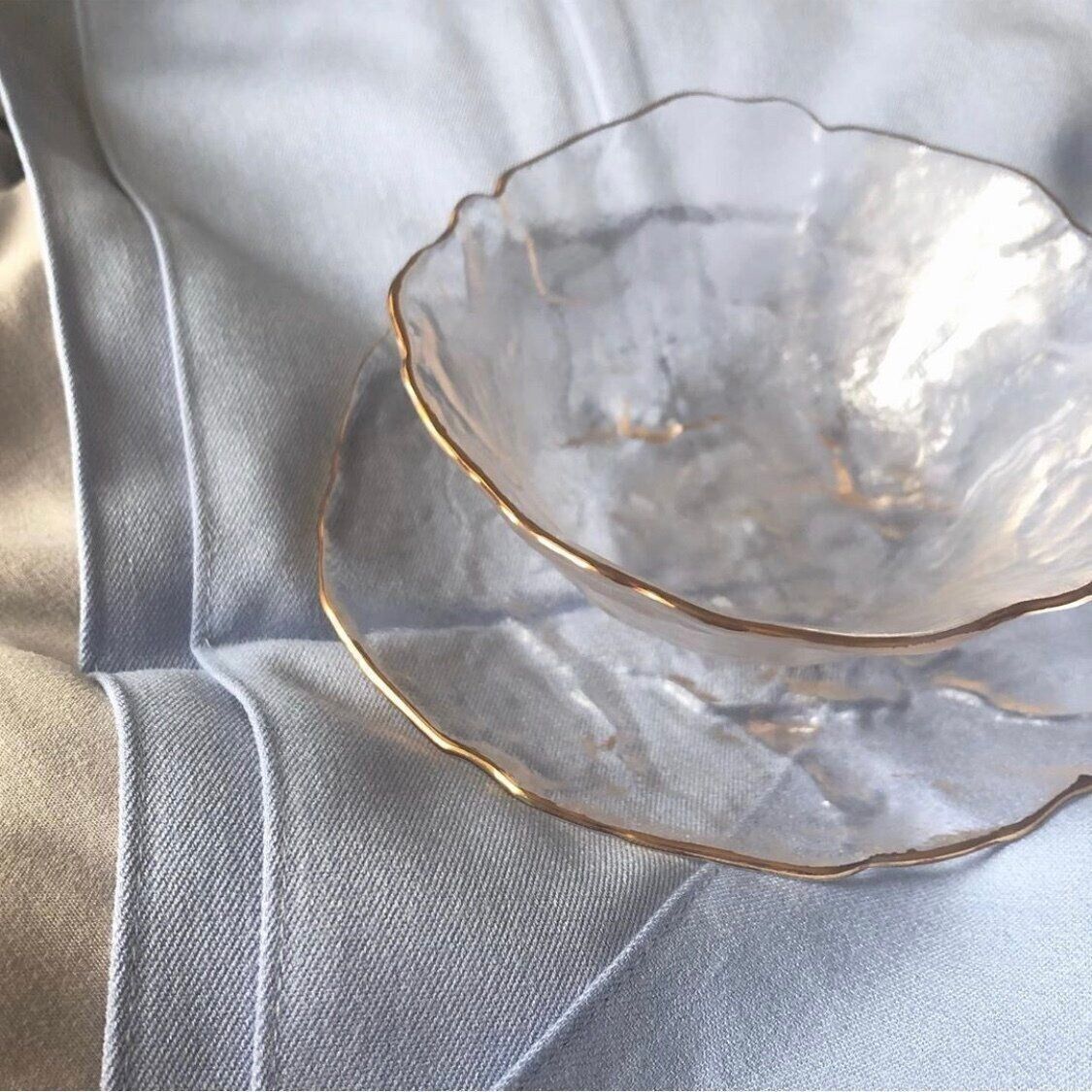 amiさんが購入したのは、金縁がアクセントになったガラスボウルとプレート。かわいいのでこれからたくさん使いたいとのこと。かき氷やフルーツポンチなど、ヒンヤリスイーツに使うとよりおいしそうですね。