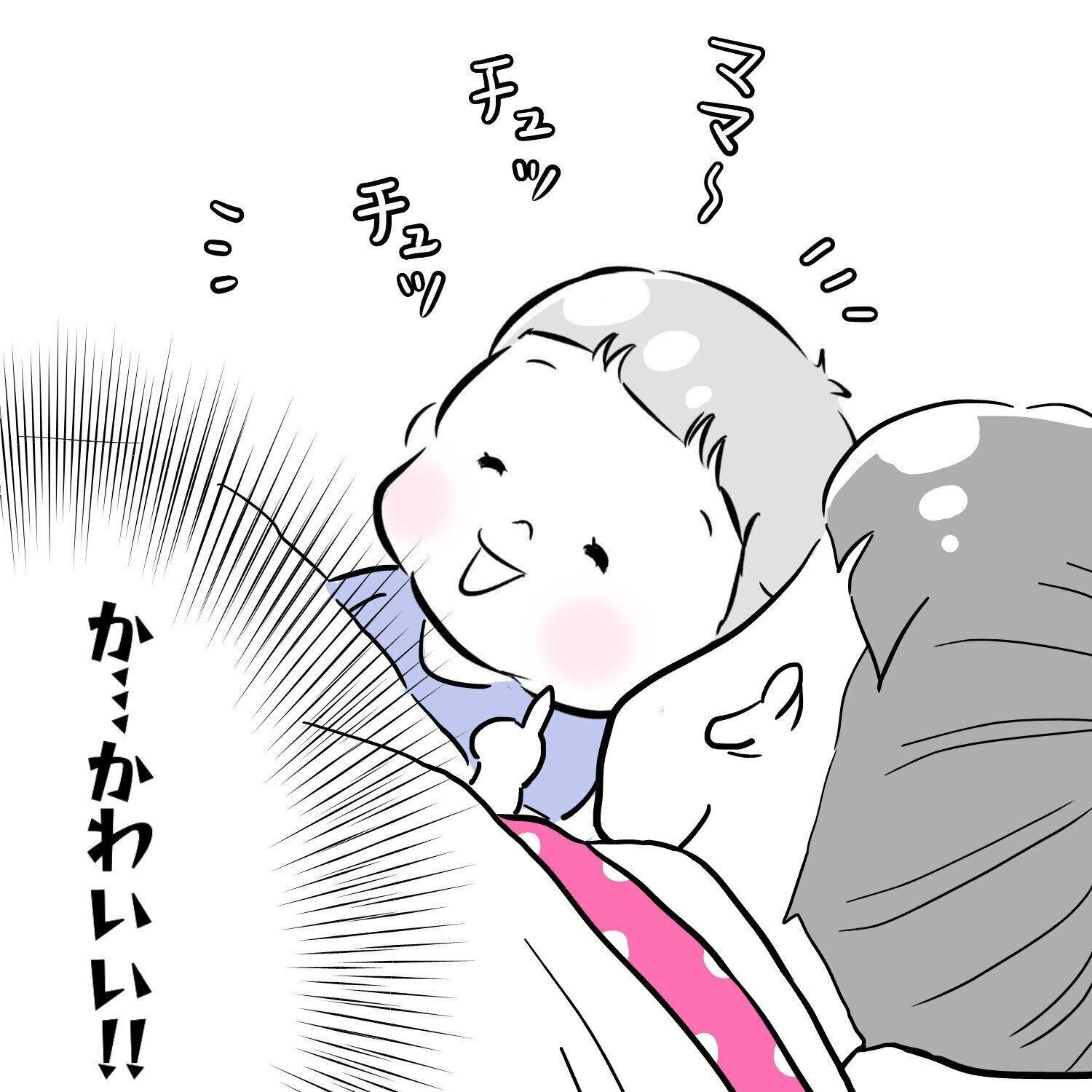 最近では一緒に布団に横になると、「ママー、チュ!チュ!」と、ほっぺにチューをしろ!と自分の頬を指さす息子。