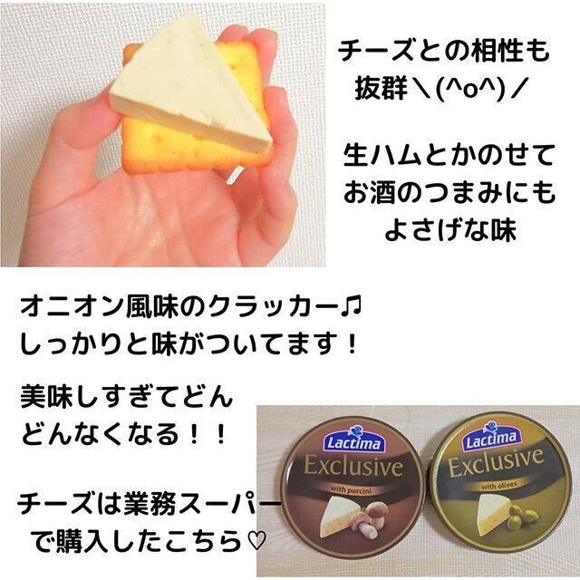 「そのまま食べてもいいし、チーズとかと合わせて食べても最高なんです。しかもたくさん入ってお値段118円ほど。クラッカー好きさんにはぜひ試してみて欲しい一品です」