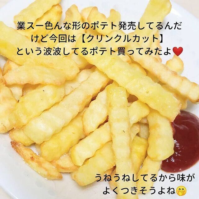 「これは本当に何回もリピしています。お家で揚げるだけで好きなだけ熱々のポテトが食べれます!1kgも入って195円というお値段も魅力的」