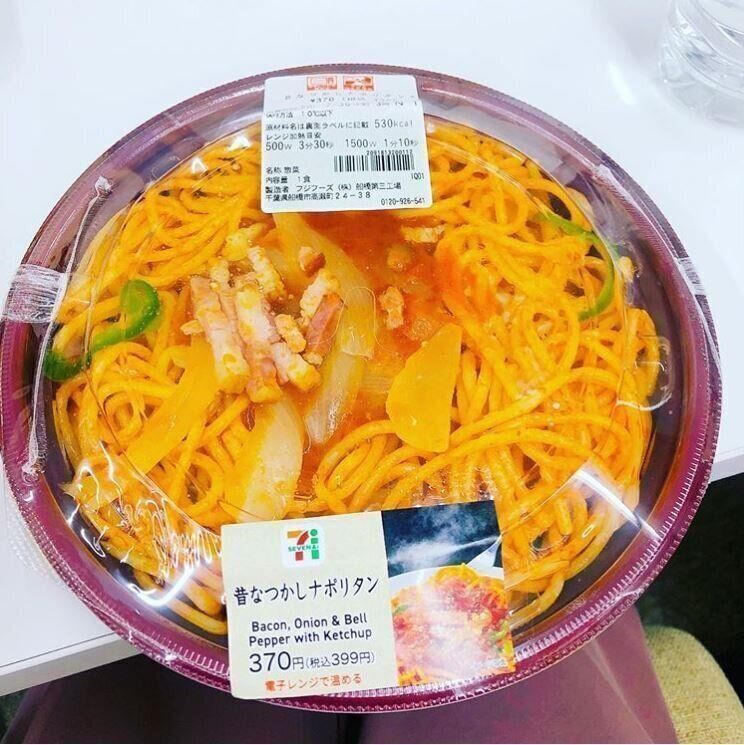 ランチにセブンイレブンで「昔なつかしナポリタン」を購入したA.Iさん。洋食屋さんで食べるようなナポリタンが、コンビニで370円で買えるなんて安くて便利ですよね。ベーコン・玉ねぎ・ピーマンと具もしっかり入っているのが嬉しいですね。